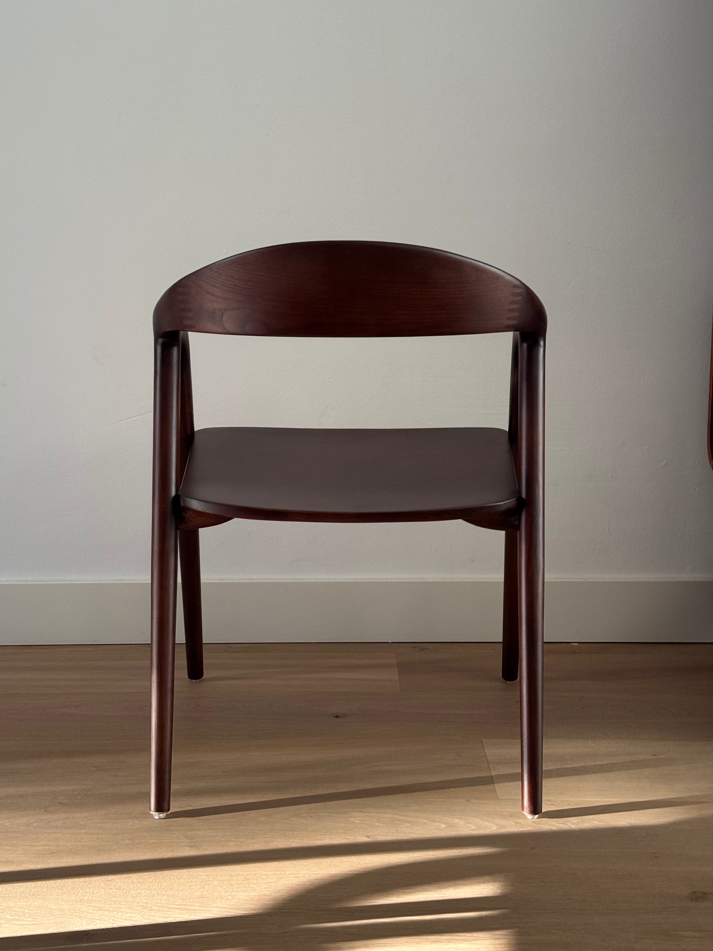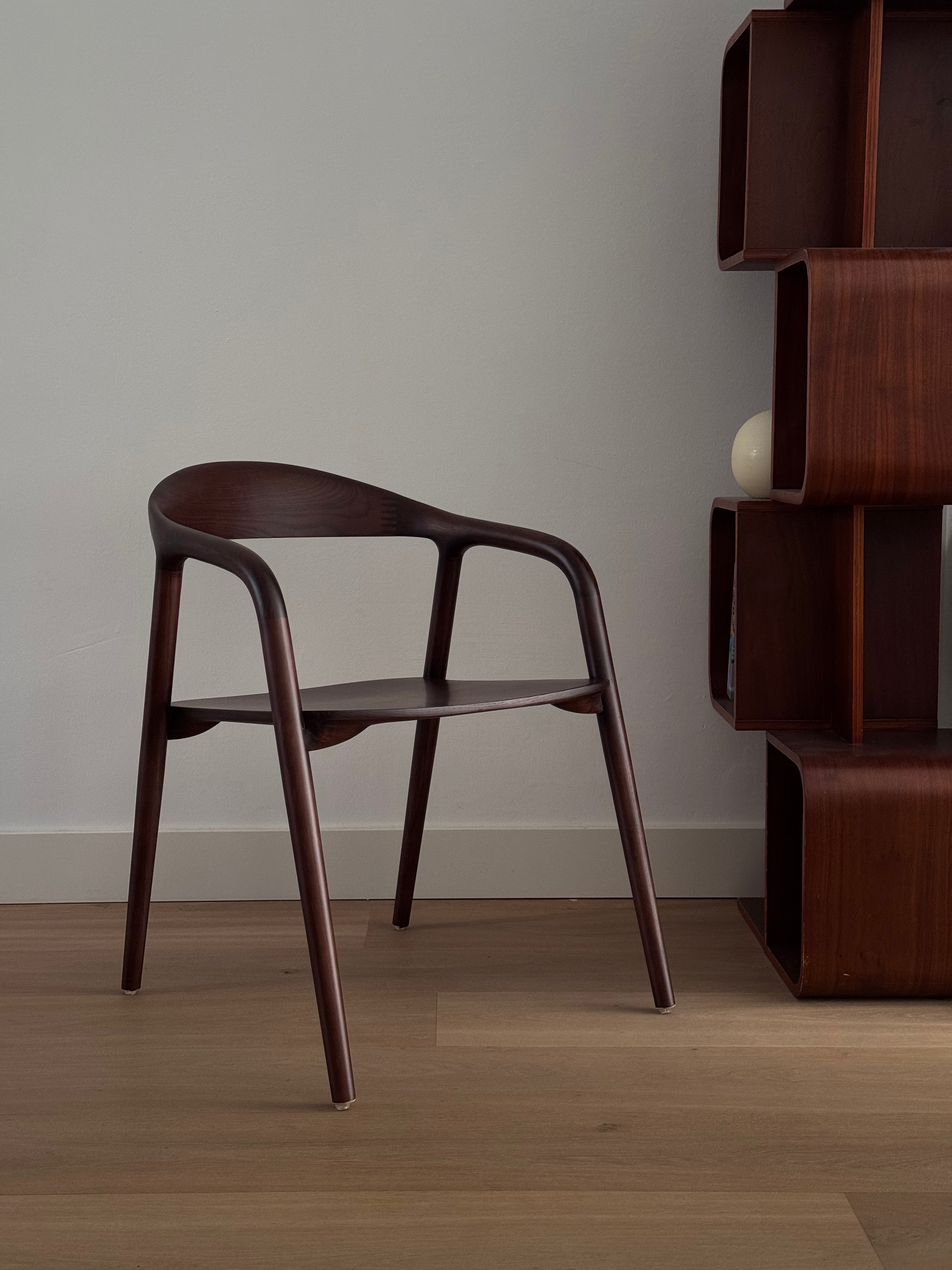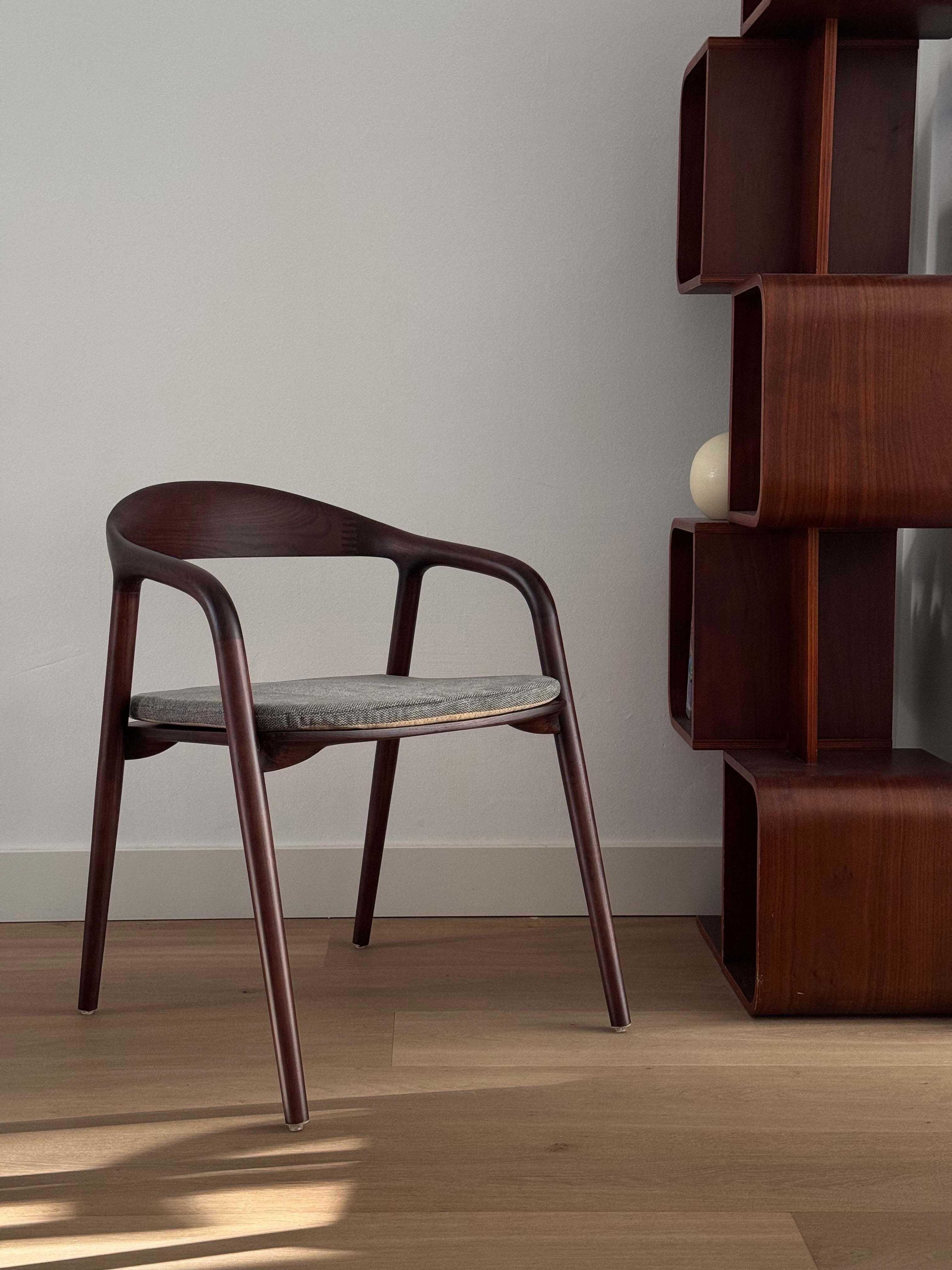 This elegant R'CHAIR is crafted from solid ash wood and shaped with precision using the steam-bending technique. Its organic design with smooth, flowing lines creates a refined and timeless look. The natural ash wood grain and light finish make it a perfect fit for any interior.